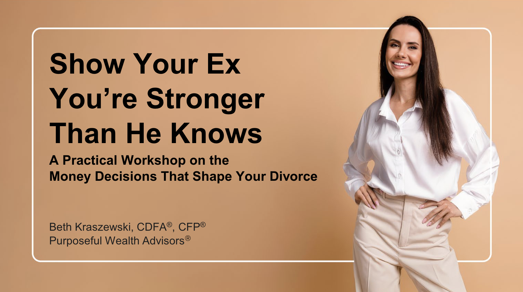In my webinar, Stronger Than You Know (yes called by the same name as my book), I’ll walk you through what actually matters when you’re facing divorce - and what doesn’t.